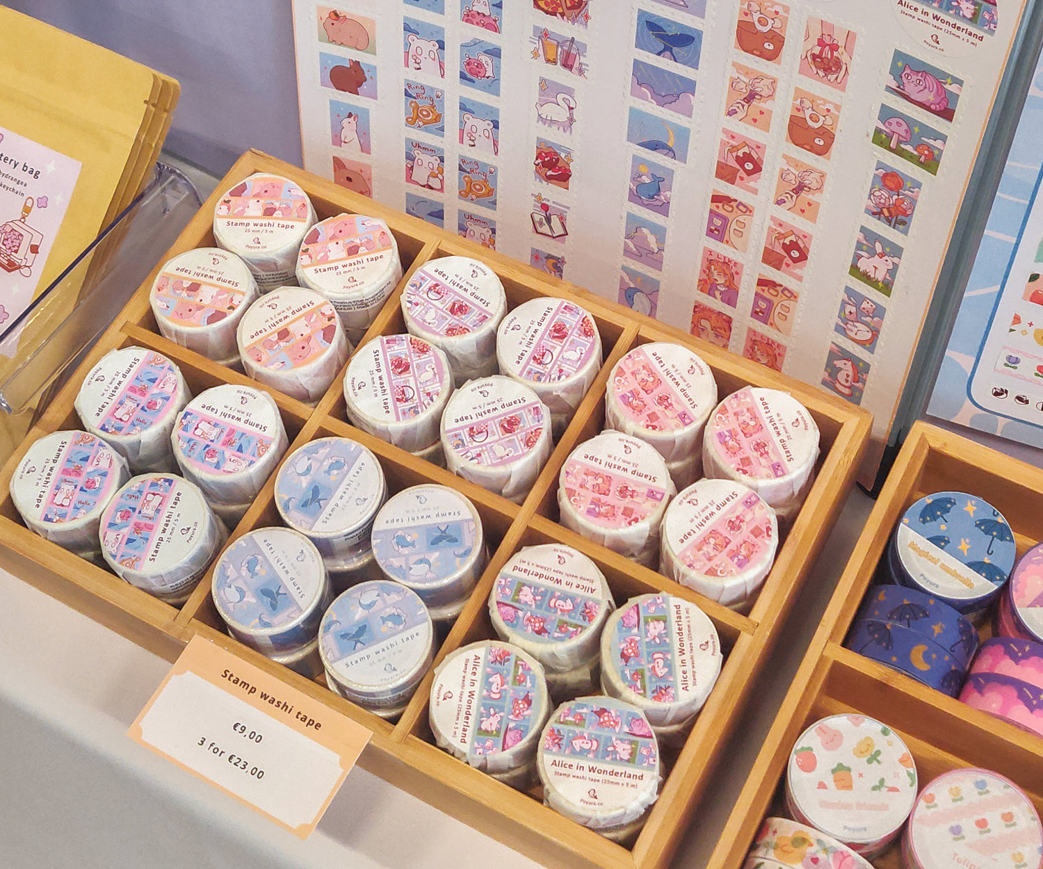 The bookmarks always felt a bit lost at our booth—we never knew where to put them. But I’m excited to say we finally found the perfect spot to display them. Plus, Jenny created the cutest display for the washi tapes so you can see all the designs more clearly!